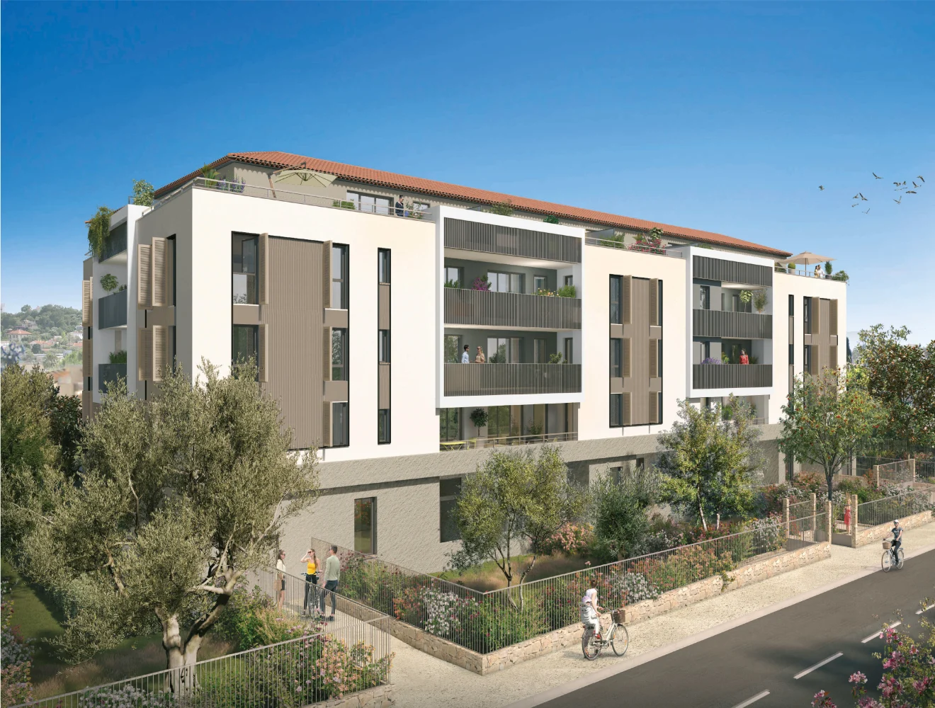 Les logements ont été conçus pour offrir un cadre de vie élégant, intégrant un design contemporain et des matériaux de qualité. Chaque appartement dispose d'un espace extérieur privatif, tel qu'un balcon, une terrasse ou un jardin, permettant de profiter du climat méditerranéen. Certains lots offrent également une vue sur la mer.