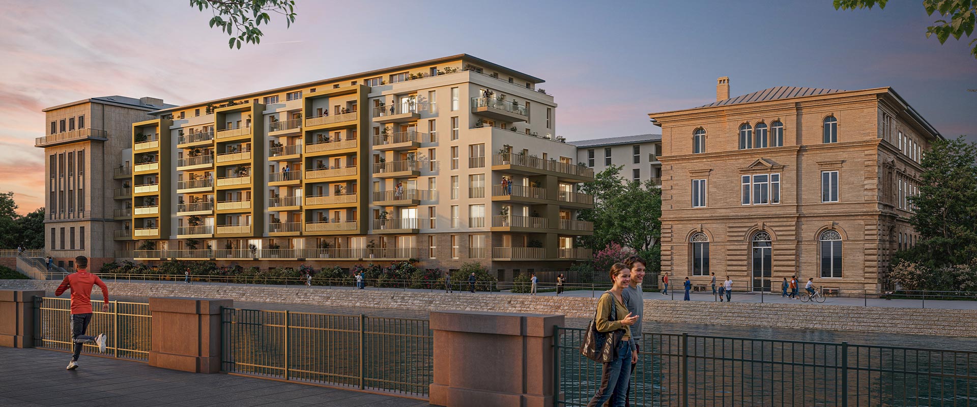 - Prestations : balcons ou terrasses pour la plupart des logements, cuisines et salles de bains équipées, volets roulants électriques, chaudière individuelle gaz à condensation, carrelage grand format, parquet dans les chambres.