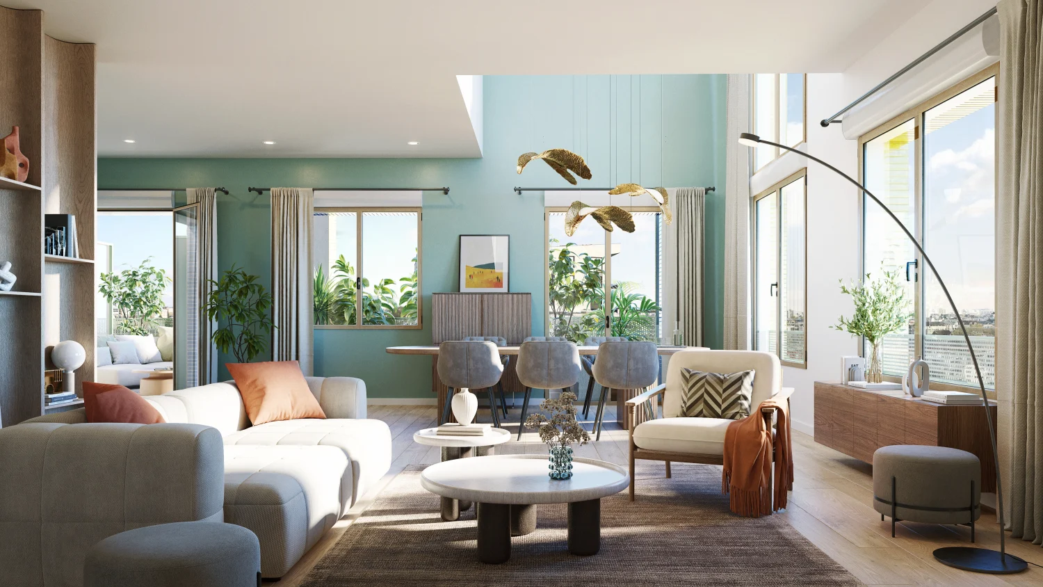 Chaque habitation bénéficie d'un espace extérieur privatif, qu'il s'agisse d'une loggia ou d'une terrasse, permettant de profiter pleinement d'un cœur d'îlot paysager aménagé avec soin. Les agencements intérieurs, méticuleusement étudiés, proposent des logements traversants, dont certains en duplex, offrant de multiples expositions pour une luminosité naturelle optimale et des volumes chaleureux.