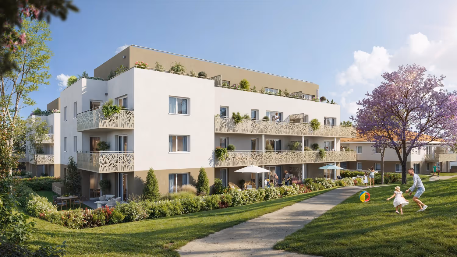 Les résidents bénéficieront d'un cadre de vie privilégié avec des prestations de qualité, incluant des balcons, terrasses ou jardins privatifs pour chaque logement.