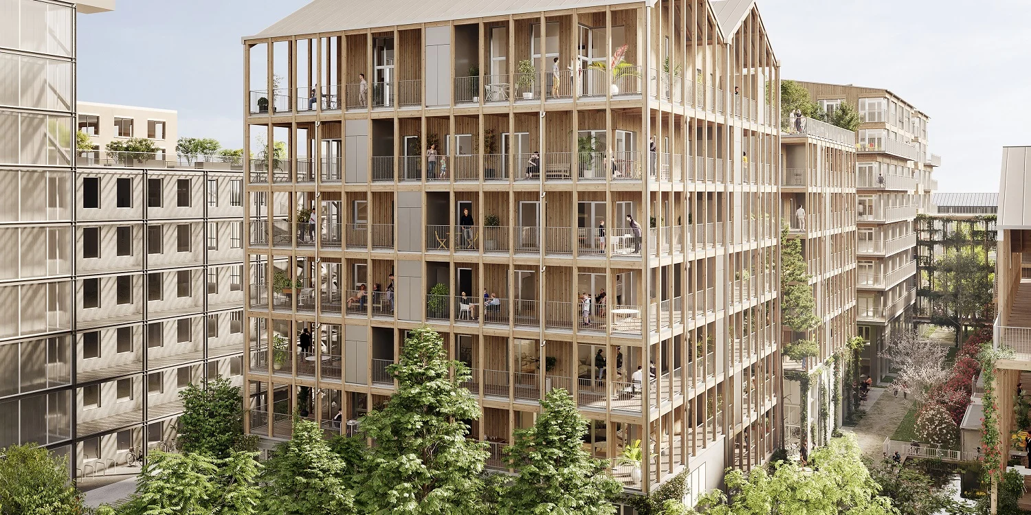 L'architecture de l'ensemble se caractérise par l'utilisation notable du bois et l'intégration de passerelles suspendues. Les rez-de-chaussée des bâtiments sont conçus pour être animés et végétalisés, visant à offrir un cadre de vie novateur.