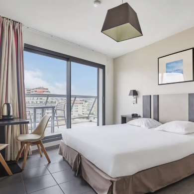 - Services : restaurant, espace balnéo, médiathèque, espace beauté, salle de gym, bar, salle télé, parking
