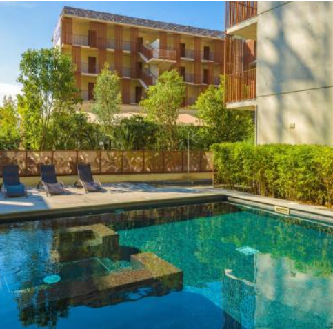 - Espaces communs : jardin, espace beauté, salle de gym, piscine, bar, salle d'activités, salle TV, bibliothèque, parking, espace multimédia, restaurant