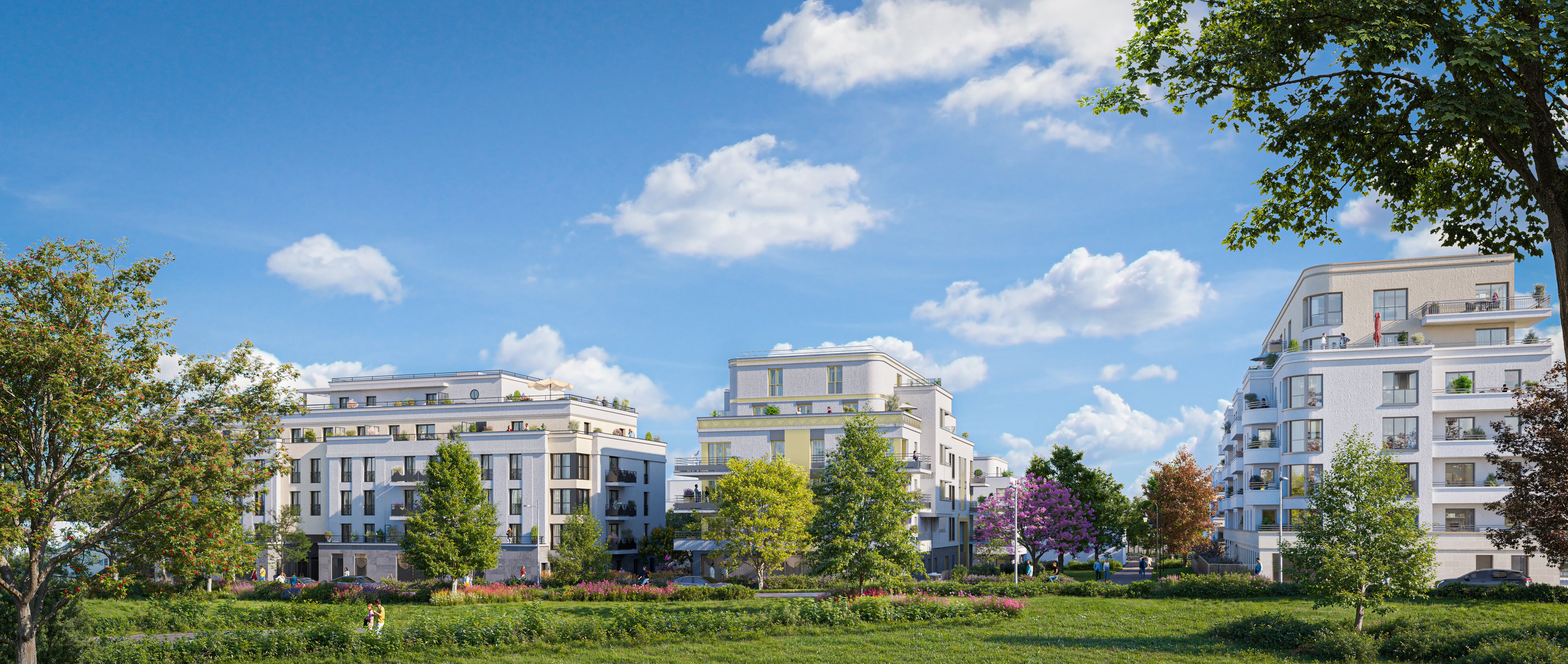 Il est possible d'acquérir un appartement neuf, allant du studio au 5 pièces. Chaque logement dispose d'un espace extérieur privatif tel qu'un jardin, un balcon, une loggia ou une terrasse.
