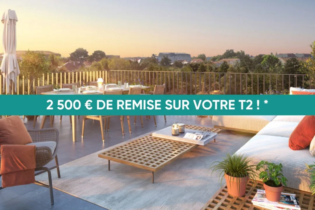 Une offre promotionnelle exceptionnelle permet de bénéficier d'une réduction de 2 500 € TTC sur l'achat d'un logement de deux pièces. Cette remise est conditionnée à la signature d'un acte de réservation avant le 31 octobre 2025 et à la finalisation de l'acte authentique de vente dans les trois mois suivant la réservation initiale, cette offre étant limitée aux cinq premiers acquéreurs.