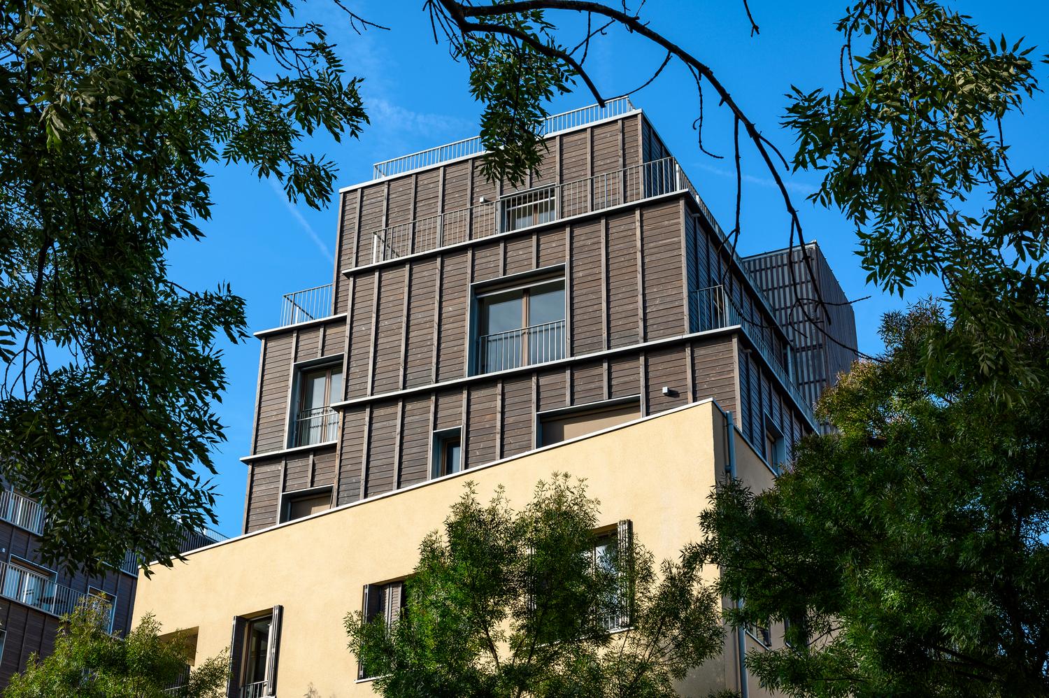 Cette résidence neuve, située au cœur du 20ème arrondissement de Paris, propose des logements aux prestations de haute qualité, intégrant une architecture moderne en bois et des isolants biosourcés. L'ensemble répond à des normes énergétiques élevées, visant une construction durable avec un impact carbone réduit, zéro déchet et zéro rejet grâce à une gestion résiliente des eaux pluviales.
