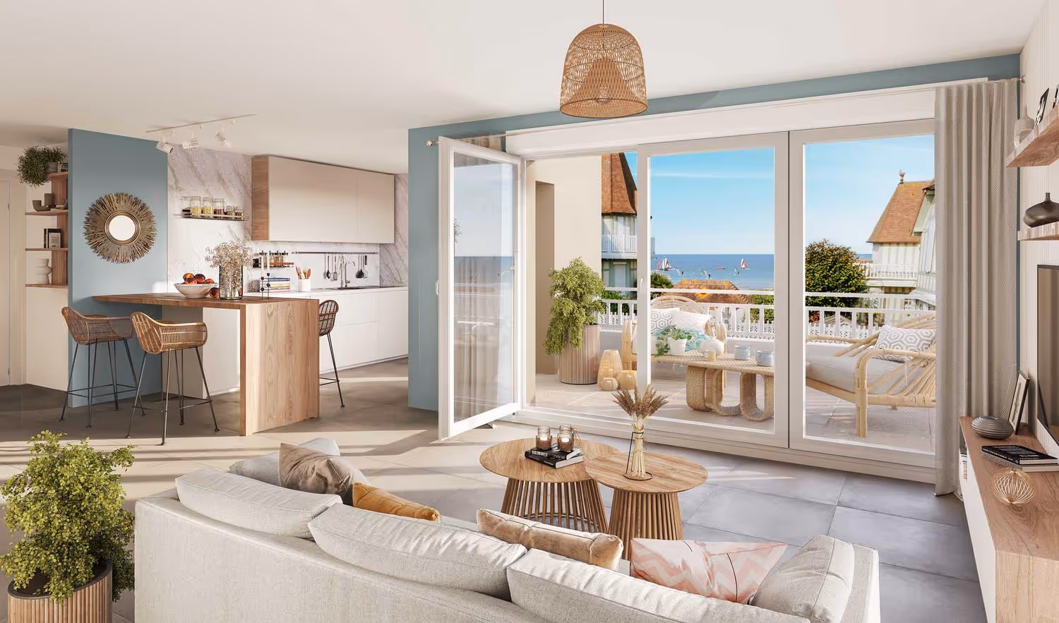 Les futurs résidents bénéficieront d'un cadre de vie agréable, à proximité immédiate de la mer et des services de proximité. L'architecture de l'ensemble s'inspire de l'esprit balnéaire contemporain, intégrant des matériaux locaux comme l'enduit matricé rappelant la pierre de Caen, assurant une intégration réussie dans l'environnement existant.