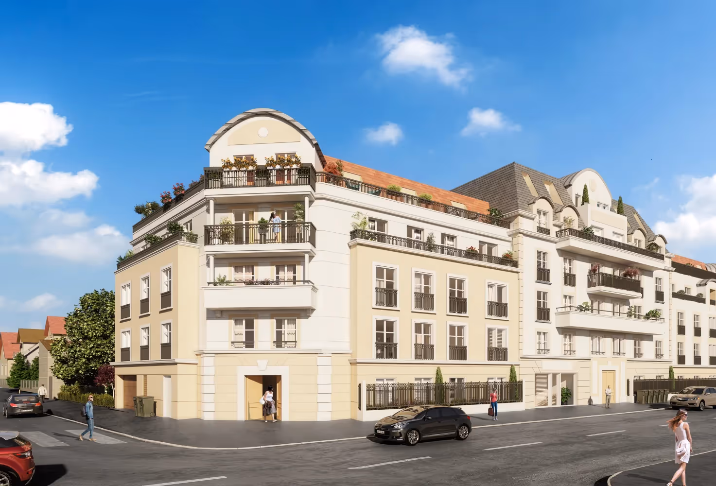 L'architecture de la résidence réinterprète avec finesse les lignes classiques en y intégrant des matériaux de qualité et des couleurs élégantes, conférant à l'ensemble une allure résolument contemporaine.