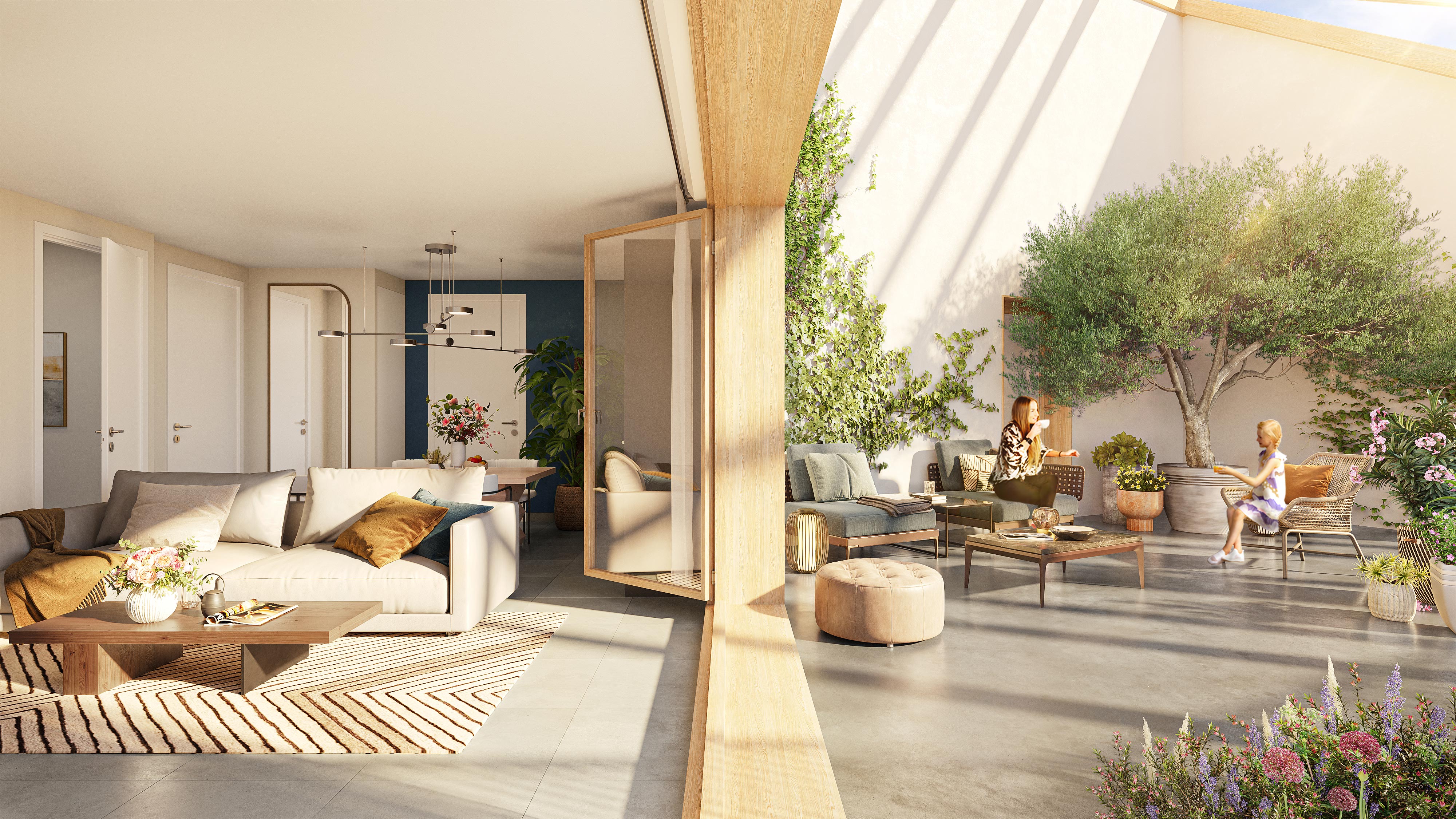 - Intérieurs ouverts sur terrasses et jardins privatifs